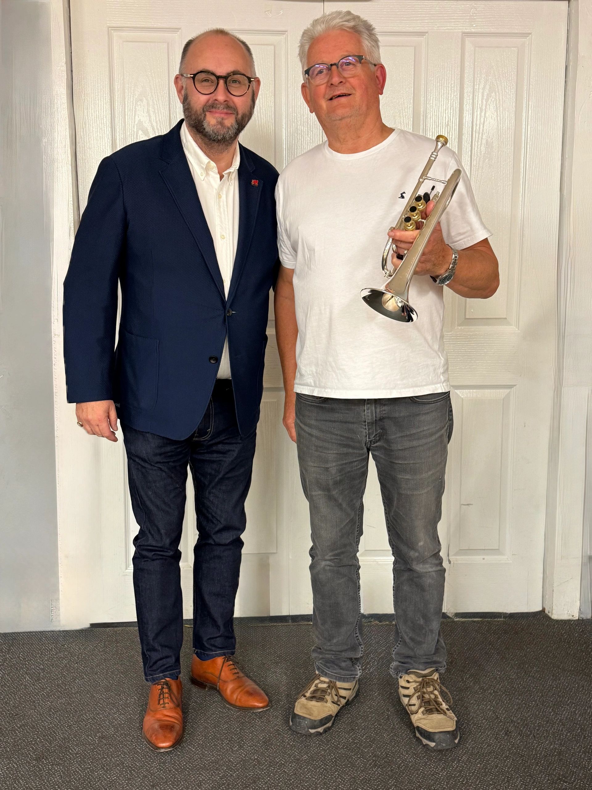 It was great to meet up with longtime friend and cornet legend Kevin Robbins to take delivery of his new Oldroyd EVO cornet…Kevin for many years was the principal cornet with the famous Sun Life band
